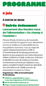 Ce type de réflexion sera également proposée au grand public afin de sensibiliser la population et de recueillir de nouvelles contributions, par exemple à Schiltigheim et au Neuhof.