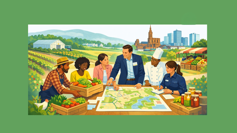 En décembre 2025, plus d’une vingtaine de représentant·es du comité partenarial alimentation — réunissant notamment la Région, l’Université de Strasbourg, la Chambre d’agriculture, Bio en Grand Est, la CCI, la Chambre de métiers ou encore la Banque alimentaire — ont participé à un exercice de simulation.