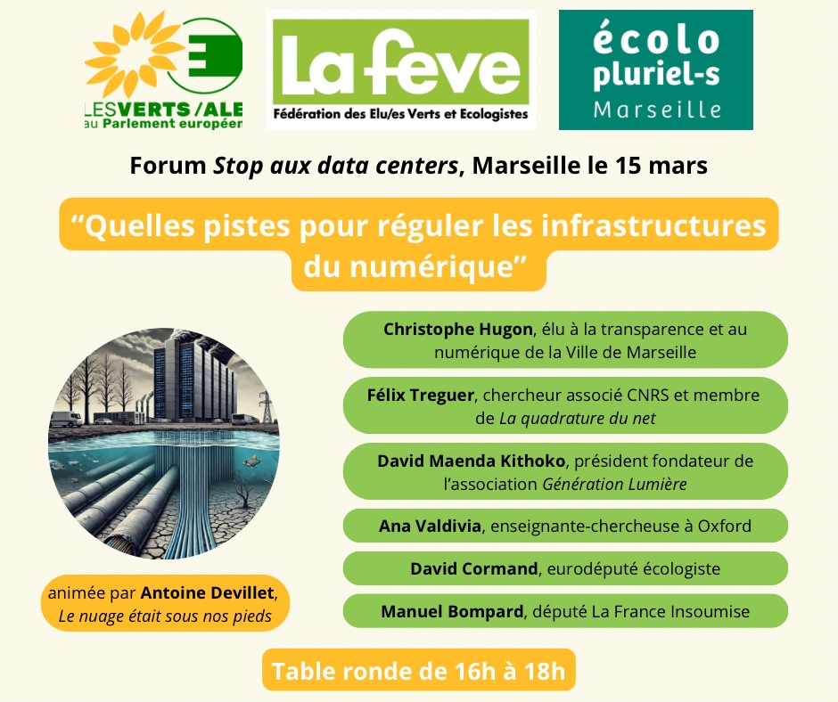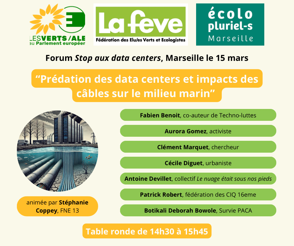 Marseille a accueilli 5 datacenters depuis 2014 et est reliée au monde par 18 câbles sous-marins. Ces installations ont des conséquences environnementales et sociales : forte consommation d’électricité, prélèvement massif d’eau potable, artificialisation des sols… Considérées comme « une chance en termes d’attractivité et de rayonnement » par le président de la République, ces infrastructures du numériques créent peu d’emplois locaux tout en générant une pollution significative…