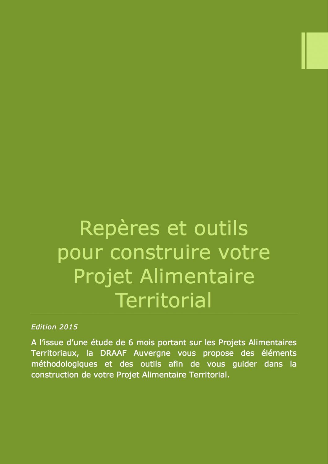 A l’issue d’une étude de 6 mois portant sur les Projets Alimentaires Territoriaux, la DRAAF Auvergne vous propose des éléments méthodologiques et des outils afin de vous guider dans la construction de votre Projet Alimentaire Territorial.